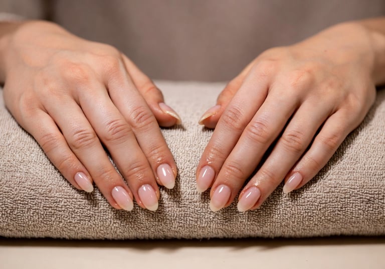 Recubrimiento de uñas natural para proteger su crecimiento. incluye manicure Rusa, corrección de forma y gel con color.
